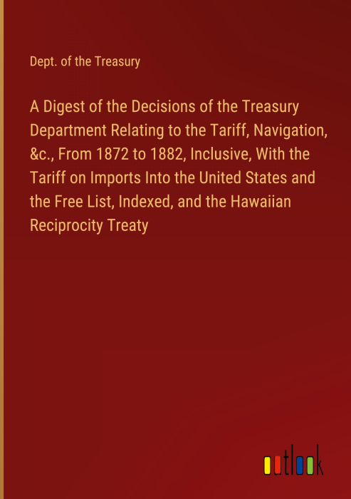 Beskrivelse av A Digest of the Decisions of the Treasury Department Relating to the Tariff, Navigation, &c., From 1872 to 1882, Inclusive, With the Tariff on Imports Into the United States and the Free List, Indexed, and the Hawaiian Reciprocity Treaty