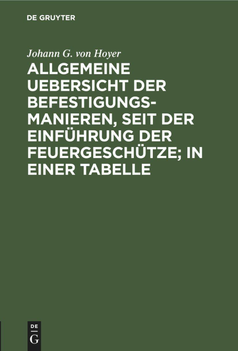 Boken Allgemeine Uebersicht der Befestigungs-Manieren, seit der Einführung der Feuergeschütze; in einer Tabelle finnes i følgende kategorier: