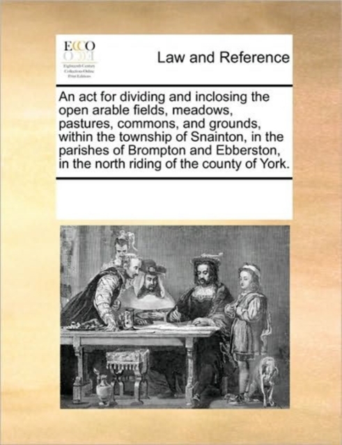 Boken An ACT for Dividing and Inclosing the Open Arable Fields, Meadows, Pastures, Commons, and Grounds, Within the Township of Snainton, in the Parishes of Brompton and Ebberston, in the North Riding of the County of York. finnes i følgende kategorier: