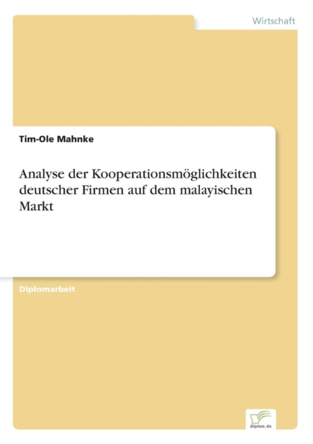 Boken Analyse der Kooperationsmoeglichkeiten deutscher Firmen auf dem malayischen Markt finnes i følgende kategorier: