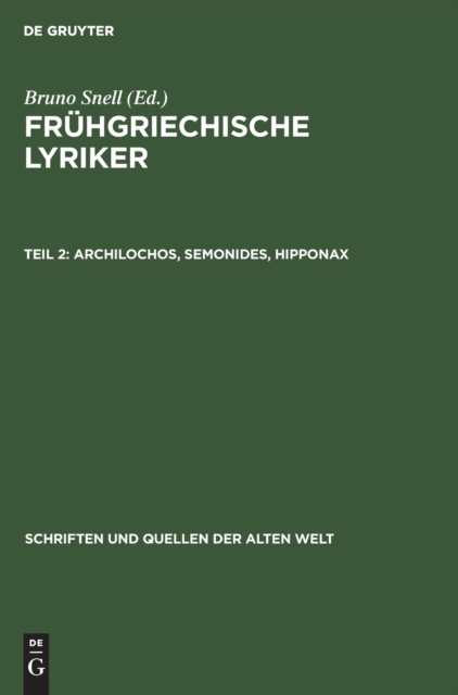 Keine ausführliche Beschreibung für "Archilochos, Semonides, Hipponax" verfügbar.