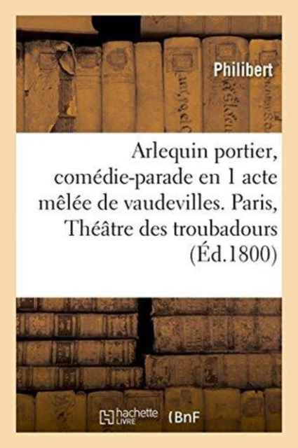 Arlequin portier, comédie-parade en 1 acte mêlée de vaudevilles, par Philibert et Marty. [Paris, Théâtre des troubadours, 24 brumaire an IX.]Date de l'édition originale: 1800Le présent ouvrage s'inscrit dans une politique de conservation patrimoniale des ouvrages de la littérature Française mise en place avec la BNF.HACHETTE LIVRE et la BNF proposent ainsi un catalogue de titres indisponibles, la BNF ayant numérisé ces oeuvres et HACHETTE LIVRE les imprimant à la demande.Certains de ces ouvrages reflètent des courants de pensée caractéristiques de leur époque, mais qui seraient aujourd'hui jugés condamnables.Ils n'en appartiennent pas moins à l'histoire des idées en France et sont susceptibles de présenter un intérêt scientifique ou historique.Le sens de notre démarche éditoriale consiste ainsi à permettre l'accès à ces oeuvres sans pour autant que nous en cautionnions en aucune façon le contenu.Pour plus d'informations, rendez-vous sur www.hachettebnf.fr