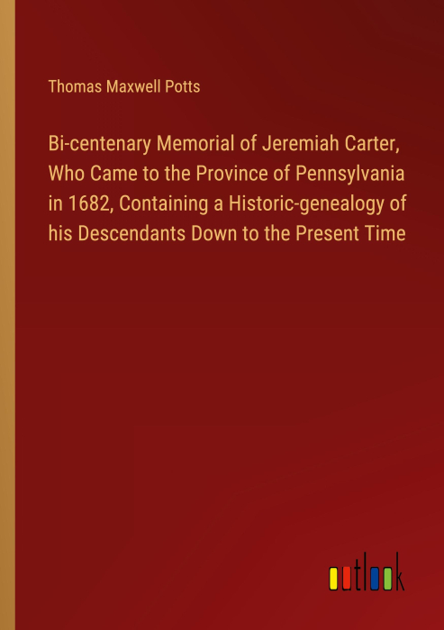 Boken Bi-centenary Memorial of Jeremiah Carter, Who Came to the Province of Pennsylvania in 1682, Containing a Historic-genealogy of his Descendants Down to the Present Time finnes i følgende kategorier:
