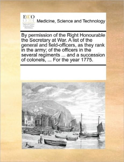 By Permission of the Right Honourable the Secretary at War. a List of the General and Field-Officers, as They Rank in the Army; Of the Officers in the Several Regiments ... and a Succession of Colonels, ... for the Year 1775.
