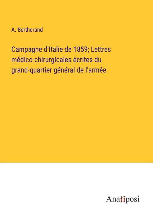 Campagne d'Italie de 1859; Lettres médico-chirurgicales écrites du grand-quartier général de l'armée