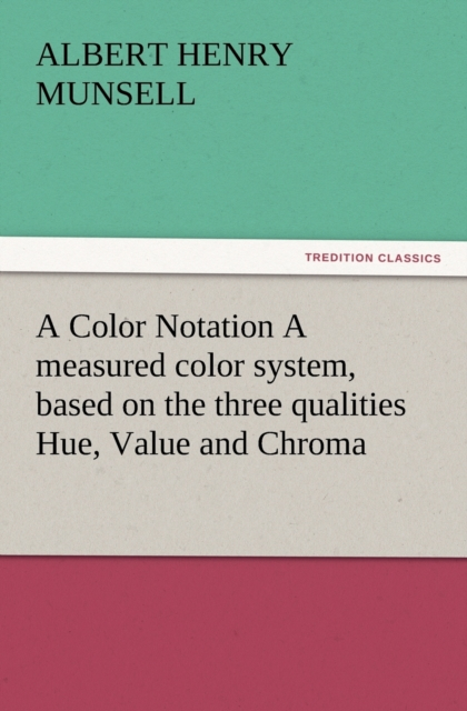 Boken Color Notation A measured color system, based on the three qualities Hue, Value and Chroma finnes i følgende kategorier: