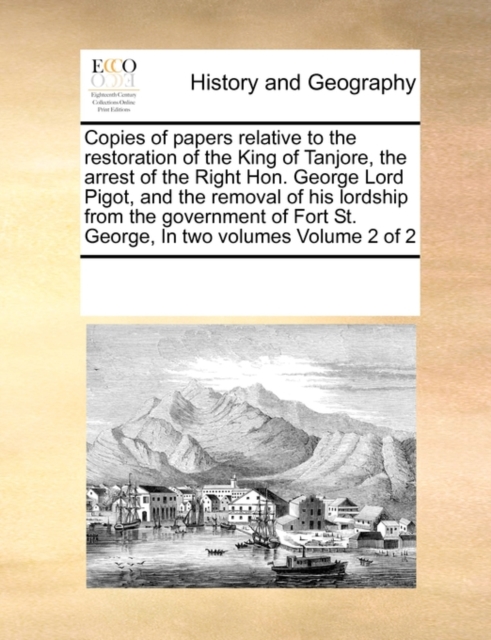 Copies of Papers Relative to the Restoration of the King of Tanjore, the Arrest of the Right Hon. George Lord Pigot, and the Removal of His Lordship from the Government of Fort St. George, in Two Volumes Volume 2 of 2