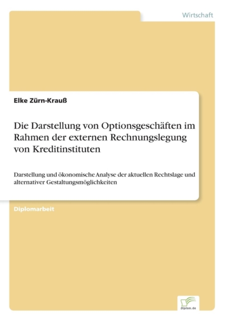 Diskutiert wird vor allem eine dem Risiko Rechnung tragende bilanzielle Abbildung risikokompensierender Strategien. Ziel der Arbeit ist die Darstellung der Rechnungslegung von Optionsgeschäften nach aktueller Rechtslage. Zudem werden alternative Gestaltungsmöglichkeiten, d.h. Rechnungslegungsregelungen für Optionsgeschäfte außerhalb des in der BRD geltenden Rechts, diskutiert und Möglichkeiten sowie Grenzen einer Anpassung an internationale Rechnungslegungsstandards aufgezeigt.
