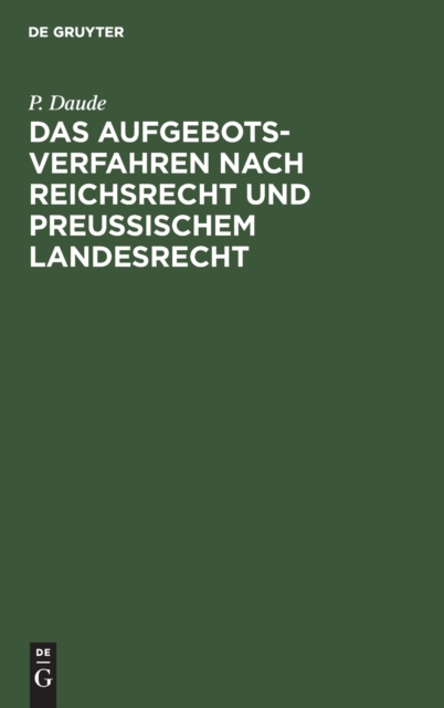 Boken Das Aufgebotsverfahren Nach Reichsrecht Und Preussischem Landesrecht finnes i følgende kategorier: