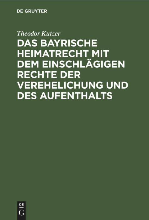 Boken Das bayrische Heimatrecht mit dem einschlägigen Rechte der Verehelichung und des Aufenthalts finnes i følgende kategorier:
