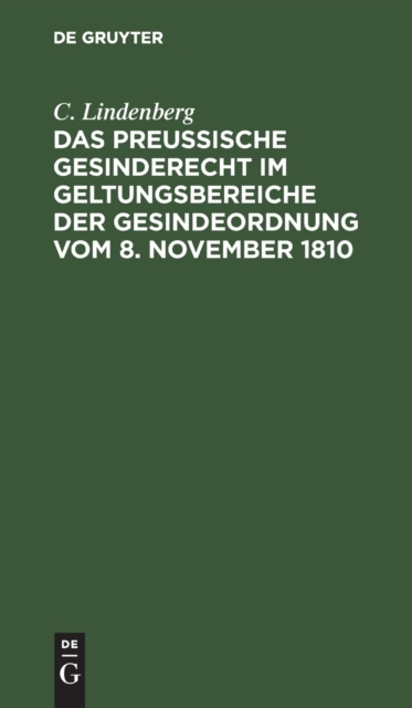 Boken Das Preussische Gesinderecht im Geltungsbereiche der Gesindeordnung vom 8. November 1810 finnes i følgende kategorier: