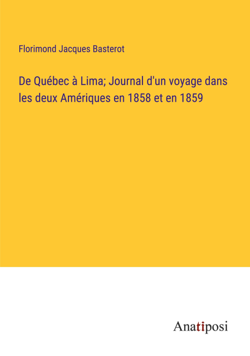 Beskrivelse av De Québec à Lima; Journal d'un voyage dans les deux Amériques en 1858 et en 1859