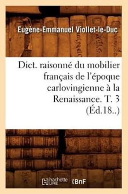 Dictionnaire raisonne du mobilier francais de l'epoque carlovingienne a la Renaissance. T. 3 / par E. Viollet-le-Duc,...Date de l'edition originale : 18..Sujet de l'ouvrage : Ameublement -- France -- Histoire -- DictionnairesMeubles -- France -- Histoire -- DictionnairesCe livre est la reproduction fidele d'une oeuvre publiee avant 1920 et fait partie d'une collection de livres reimprimes a la demande editee par Hachette Livre, dans le cadre d'un partenariat avec la Bibliotheque nationale de France, offrant l'opportunite d'acceder a des ouvrages anciens et souvent rares issus des fonds patrimoniaux de la BnF.Les oeuvres faisant partie de cette collection ont ete numerisees par la BnF et sont presentes sur Gallica, sa bibliotheque numerique.En entreprenant de redonner vie a ces ouvrages au travers d'une collection de livres reimprimes a la demande, nous leur donnons la possibilite de rencontrer un public elargi et participons a la transmission de connaissances et de savoirs parfois difficilement accessibles.Nous avons cherche a concilier la reproduction fidele d'un livre ancien a partir de sa version numerisee avec le souci d'un confort de lecture optimal. Nous esperons que les ouvrages de cette nouvelle collection vous apporteront entiere satisfaction.Pour plus d'informations, rendez-vous sur www.hachettebnf.frhttp://gallica.bnf.fr/ark:/12148/bpt6k200472s