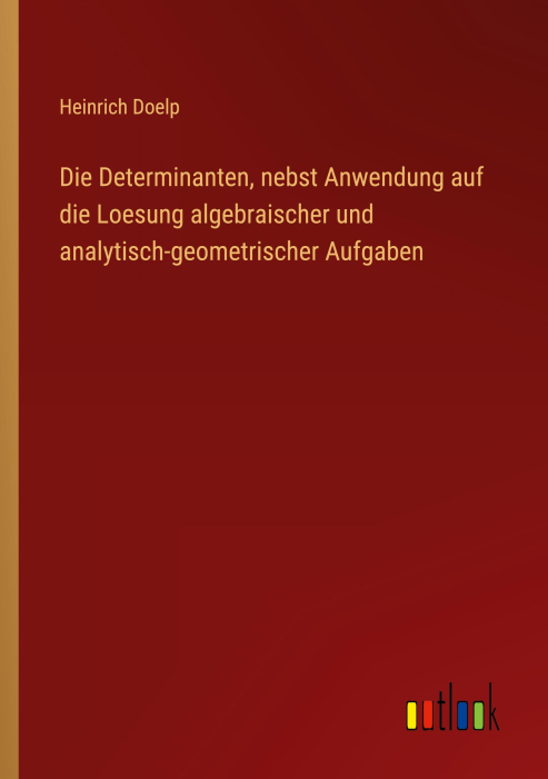 Boken Die Determinanten, nebst Anwendung auf die Loesung algebraischer und analytisch-geometrischer Aufgaben finnes i følgende kategorier: