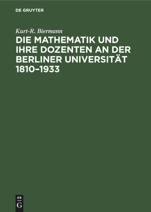 Beskrivelse av Die Mathematik und ihre Dozenten an der Berliner Universität 1810¿1933