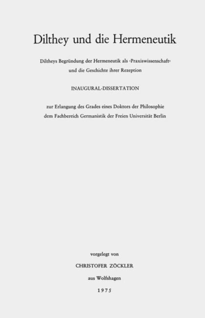 Boken Dilthey und die Hermeneutik finnes i følgende kategorier: