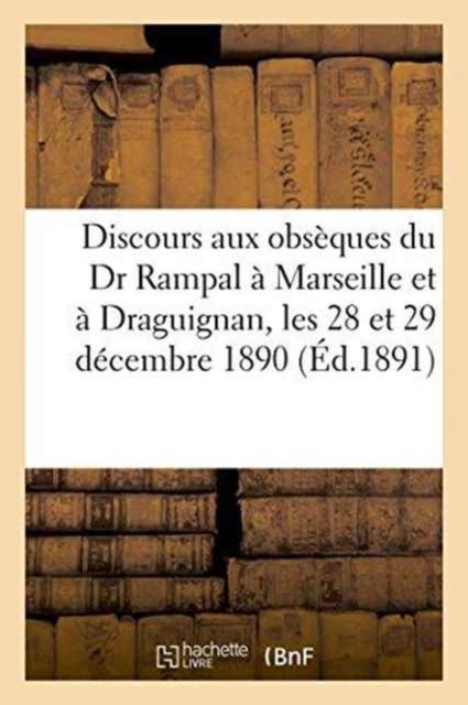Discours prononcés aux obsèques du Dr Rampal à Marseille et à Draguignan, les 28 et 29 décembre 1890Date de l'édition originale: 1891Sujet de l'ouvrage: Rampal, DrAppartient à l'ensemble documentaire: PACA1Le présent ouvrage s'inscrit dans une politique de conservation patrimoniale des ouvrages de la littérature Française mise en place avec la BNF.HACHETTE LIVRE et la BNF proposent ainsi un catalogue de titres indisponibles, la BNF ayant numérisé ces oeuvres et HACHETTE LIVRE les imprimant à la demande.Certains de ces ouvrages reflètent des courants de pensée caractéristiques de leur époque, mais qui seraient aujourd'hui jugés condamnables.Ils n'en appartiennent pas moins à l'histoire des idées en France et sont susceptibles de présenter un intérêt scientifique ou historique.Le sens de notre démarche éditoriale consiste ainsi à permettre l'accès à ces oeuvres sans pour autant que nous en cautionnions en aucune façon le contenu.Pour plus d'informations, rendez-vous sur www.hachettebnf.fr