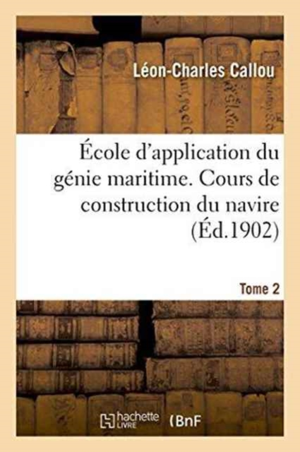 École d'application du génie maritime. Cours de construction du navire, par L. Callou, .... Tome 2Date de l'édition originale: 1902Le présent ouvrage s'inscrit dans une politique de conservation patrimoniale des ouvrages de la littérature Française mise en place avec la BNF.HACHETTE LIVRE et la BNF proposent ainsi un catalogue de titres indisponibles, la BNF ayant numérisé ces oeuvres et HACHETTE LIVRE les imprimant à la demande.Certains de ces ouvrages reflètent des courants de pensée caractéristiques de leur époque, mais qui seraient aujourd'hui jugés condamnables.Ils n'en appartiennent pas moins à l'histoire des idées en France et sont susceptibles de présenter un intérêt scientifique ou historique.Le sens de notre démarche éditoriale consiste ainsi à permettre l'accès à ces oeuvres sans pour autant que nous en cautionnions en aucune façon le contenu.Pour plus d'informations, rendez-vous sur www.hachettebnf.fr