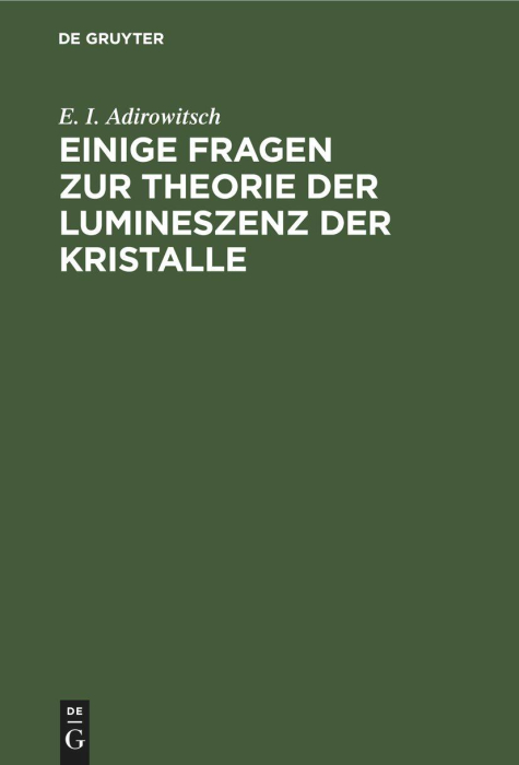 Boken Einige Fragen zur Theorie der Lumineszenz der Kristalle finnes i følgende kategorier: