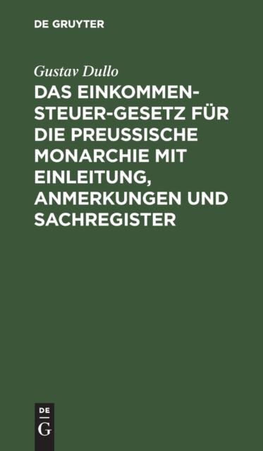 Einkommensteuer-Gesetz Fur Die Preussische Monarchie Mit Einleitung, Anmerkungen Und Sachregister