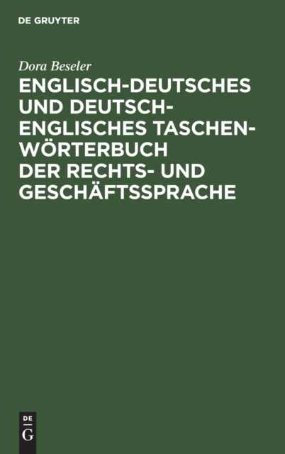 Boken Englisch-Deutsches Und Deutsch-Englisches Taschenwoerterbuch Der Rechts- Und Geschaftssprache finnes i følgende kategorier: