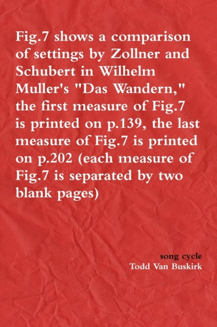 Om Fig.7 shows a comparison of settings by Zollner and Schubert in Wilhelm Muller's Das Wandern, the first measure of Fig.7 is printed on p.139, the last measure of Fig.7 is printed on p.202 (each measure of Fig.7 is separated by two blank pages)