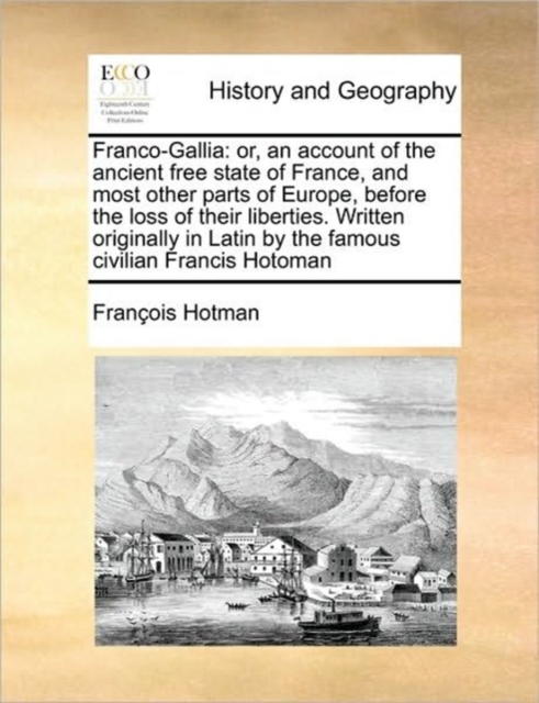 - or, an account of the ancient free state of France, and most other parts of Europe, before the loss of their liberties. Written originally in Latin by the famous civilian Francis Hotoman