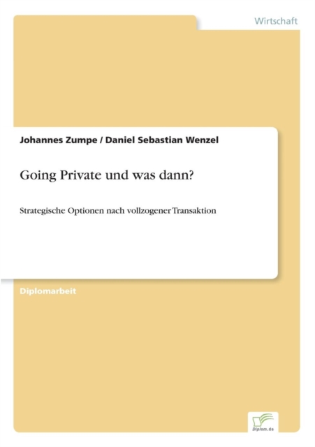 Ziel dieser Arbeit ist es, mögliche Optionen für ein durch ein Going Private von der Börse genommenes Unternehmen aufzuzeigen und vorzustellen, mit welchen Maßnahmen sich diese erreichen lassen. Dazu werden die Optionen und die Maßnahmen verschiedener Investoren aufgezeigt und zueinander in Bezug gesetzt. Dabei wird den Exitmöglichkeiten eines Finanzinvestors besonderes Augenmerk gewidmet, da er, wie sich zeigen wird, ein stärkeres Interesse an einer Entwicklung des Unternehmens nach Vollzug der Transaktion hat.. Darüber hinaus werden die verschiedenen Optionen anhand von zwei Fallstudien detailliert beschrieben.