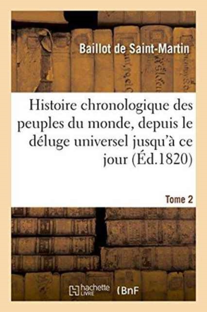 Histoire chronologique des peuples du monde, depuis le déluge universel jusqu'à ce jour. Tome 2 /; dédié au roi. Par Baillot-St-MartinDate de l'édition originale: 1820Le présent ouvrage s'inscrit dans une politique de conservation patrimoniale des ouvrages de la littérature Française mise en place avec la BNF.HACHETTE LIVRE et la BNF proposent ainsi un catalogue de titres indisponibles, la BNF ayant numérisé ces oeuvres et HACHETTE LIVRE les imprimant à la demande.Certains de ces ouvrages reflètent des courants de pensée caractéristiques de leur époque, mais qui seraient aujourd'hui jugés condamnables.Ils n'en appartiennent pas moins à l'histoire des idées en France et sont susceptibles de présenter un intérêt scientifique ou historique.Le sens de notre démarche éditoriale consiste ainsi à permettre l'accès à ces oeuvres sans pour autant que nous en cautionnions en aucune façon le contenu.Pour plus d'informations, rendez-vous sur www.hachettebnf.fr