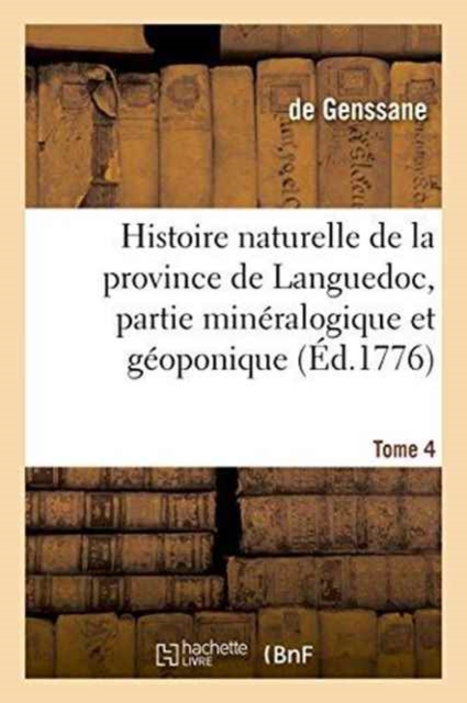 Histoire naturelle de la province de Languedoc, partie minéralogique et géoponique. Tome 4 /, ... Par M. de Genssane, ...Date de l'édition originale: 1776-1779Appartient à l'ensemble documentaire: MidiPyren1Appartient à l'ensemble documentaire: LangRous1Le présent ouvrage s'inscrit dans une politique de conservation patrimoniale des ouvrages de la littérature Française mise en place avec la BNF.HACHETTE LIVRE et la BNF proposent ainsi un catalogue de titres indisponibles, la BNF ayant numérisé ces oeuvres et HACHETTE LIVRE les imprimant à la demande.Certains de ces ouvrages reflètent des courants de pensée caractéristiques de leur époque, mais qui seraient aujourd'hui jugés condamnables.Ils n'en appartiennent pas moins à l'histoire des idées en France et sont susceptibles de présenter un intérêt scientifique ou historique.Le sens de notre démarche éditoriale consiste ainsi à permettre l'accès à ces oeuvres sans pour autant que nous en cautionnions en aucune façon le contenu.Pour plus d'informations, rendez-vous sur www.hachettebnf.fr