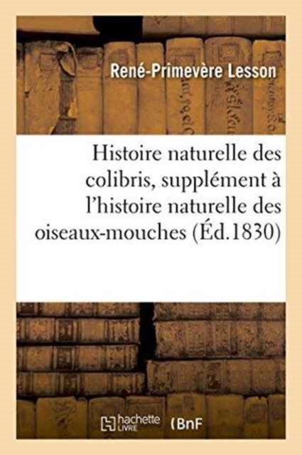 Histoire naturelle des colibris, suivie d'un supplément à l'histoire naturelle des oiseaux-mouches. Ouvrage orné de planches dessinées et gravées par les meilleurs artistes, et dédié à M. le baron Cuvier par R. P. Lesson.Date de l'édition originale: 1830-1831Le présent ouvrage s'inscrit dans une politique de conservation patrimoniale des ouvrages de la littérature Française mise en place avec la BNF.HACHETTE LIVRE et la BNF proposent ainsi un catalogue de titres indisponibles, la BNF ayant numérisé ces oeuvres et HACHETTE LIVRE les imprimant à la demande.Certains de ces ouvrages reflètent des courants de pensée caractéristiques de leur époque, mais qui seraient aujourd'hui jugés condamnables.Ils n'en appartiennent pas moins à l'histoire des idées en France et sont susceptibles de présenter un intérêt scientifique ou historique.Le sens de notre démarche éditoriale consiste ainsi à permettre l'accès à ces oeuvres sans pour autant que nous en cautionnions en aucune façon le contenu.Pour plus d'informations, rendez-vous sur www.hachettebnf.fr