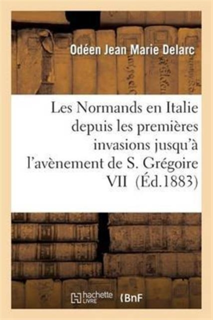 Les Normands en Italie, depuis les premières invasions jusqu'à l'avènement de S. Grégoire VII... / par O. Delarc, ...Date de l'édition originale: 1883Le présent ouvrage s'inscrit dans une politique de conservation patrimoniale des ouvrages de la littérature Française mise en place avec la BNF.HACHETTE LIVRE et la BNF proposent ainsi un catalogue de titres indisponibles, la BNF ayant numérisé ces oeuvres et HACHETTE LIVRE les imprimant à la demande.Certains de ces ouvrages reflètent des courants de pensée caractéristiques de leur époque, mais qui seraient aujourd'hui jugés condamnables.Ils n'en appartiennent pas moins à l'histoire des idées en France et sont susceptibles de présenter un intérêt scientifique ou historique.Le sens de notre démarche éditoriale consiste ainsi à permettre l'accès à ces oeuvres sans pour autant que nous en cautionnions en aucune façon le contenu.Pour plus d'informations, rendez-vous sur www.hachettebnf.fr