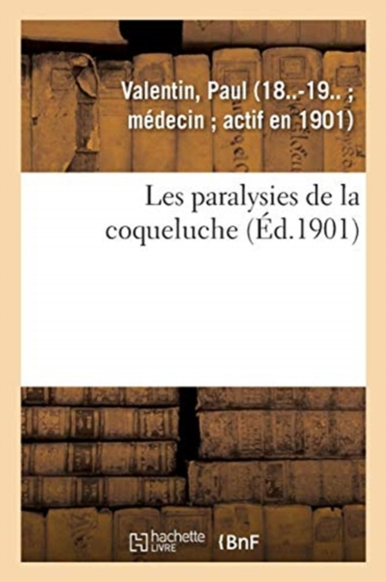 Les paralysies de la coqueluche / par le Dr Paul Valentin, ...Date de l'édition originale: 1901Le présent ouvrage s'inscrit dans une politique de conservation patrimoniale des ouvrages de la littérature Française mise en place avec la BNF. HACHETTE LIVRE et la BNF proposent ainsi un catalogue de titres indisponibles, la BNF ayant numérisé ces oeuvres et HACHETTE LIVRE les imprimant à la demande. Certains de ces ouvrages reflètent des courants de pensée caractéristiques de leur époque, mais qui seraient aujourd'hui jugés condamnables. Ils n'en appartiennent pas moins à l'histoire des idées en France et sont susceptibles de présenter un intérêt scientifique ou historique. Le sens de notre démarche éditoriale consiste ainsi à permettre l'accès à ces oeuvres sans pour autant que nous en cautionnions en aucune façon le contenu. Pour plus d'informations, rendez-vous sur www.hachettebnf.fr