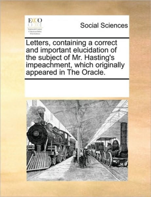 Boken Letters, Containing a Correct and Important Elucidation of the Subject of Mr. Hasting's Impeachment, Which Originally Appeared in the Oracle. finnes i følgende kategorier: