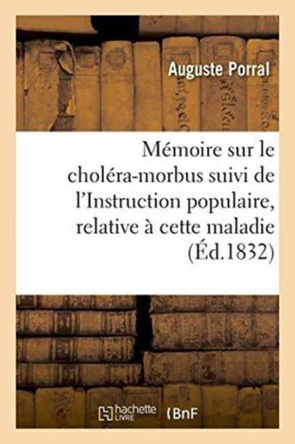 Mémoire sur le choléra-morbus; suivi de l'Instruction populaire, relative à cette maladie / par M. A. Porral, ...Date de l'édition originale: 1832Sujet de l'ouvrage: CholéraAppartient à l'ensemble documentaire: Auvergn1Le présent ouvrage s'inscrit dans une politique de conservation patrimoniale des ouvrages de la littérature Française mise en place avec la BNF.HACHETTE LIVRE et la BNF proposent ainsi un catalogue de titres indisponibles, la BNF ayant numérisé ces oeuvres et HACHETTE LIVRE les imprimant à la demande.Certains de ces ouvrages reflètent des courants de pensée caractéristiques de leur époque, mais qui seraient aujourd'hui jugés condamnables.Ils n'en appartiennent pas moins à l'histoire des idées en France et sont susceptibles de présenter un intérêt scientifique ou historique.Le sens de notre démarche éditoriale consiste ainsi à permettre l'accès à ces oeuvres sans pour autant que nous en cautionnions en aucune façon le contenu.Pour plus d'informations, rendez-vous sur www.hachettebnf.fr