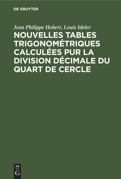 Boken Nouvelles tables trigonométriques calculées pur la division décimale du quart de cercle finnes i følgende kategorier: