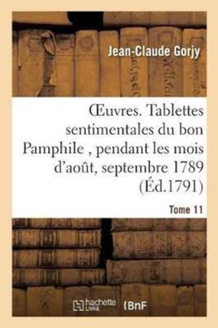Oeuvres de M. Gorjy. tome XI, Tablettes sentimentales du bon Pamphile, pendant les mois d'aout, septembre, octobre et novembre, en 1789. Publiées par M. Gorjy.Date de l'édition originale: 1791Le présent ouvrage s'inscrit dans une politique de conservation patrimoniale des ouvrages de la littérature Française mise en place avec la BNF.HACHETTE LIVRE et la BNF proposent ainsi un catalogue de titres indisponibles, la BNF ayant numérisé ces oeuvres et HACHETTE LIVRE les imprimant à la demande.Certains de ces ouvrages reflètent des courants de pensée caractéristiques de leur époque, mais qui seraient aujourd'hui jugés condamnables.Ils n'en appartiennent pas moins à l'histoire des idées en France et sont susceptibles de présenter un intérêt scientifique ou historique.Le sens de notre démarche éditoriale consiste ainsi à permettre l'accès à ces oeuvres sans pour autant que nous en cautionnions en aucune façon le contenu.Pour plus d'informations, rendez-vous sur www.hachettebnf.fr