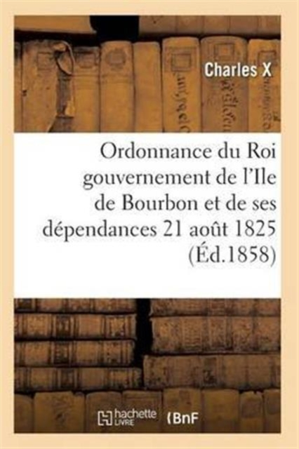 Ordonnance du Roi concernant le gouvernement de l'Ile de Bourbon et de ses dépendances. (21 aout 1825.)Date de l'édition originale: 1858[Acte royal. 1825-08-21]Le présent ouvrage s'inscrit dans une politique de conservation patrimoniale des ouvrages de la littérature Française mise en place avec la BNF.HACHETTE LIVRE et la BNF proposent ainsi un catalogue de titres indisponibles, la BNF ayant numérisé ces oeuvres et HACHETTE LIVRE les imprimant à la demande.Certains de ces ouvrages reflètent des courants de pensée caractéristiques de leur époque, mais qui seraient aujourd'hui jugés condamnables.Ils n'en appartiennent pas moins à l'histoire des idées en France et sont susceptibles de présenter un intérêt scientifique ou historique.Le sens de notre démarche éditoriale consiste ainsi à permettre l'accès à ces oeuvres sans pour autant que nous en cautionnions en aucune façon le contenu.Pour plus d'informations, rendez-vous sur www.hachettebnf.fr
