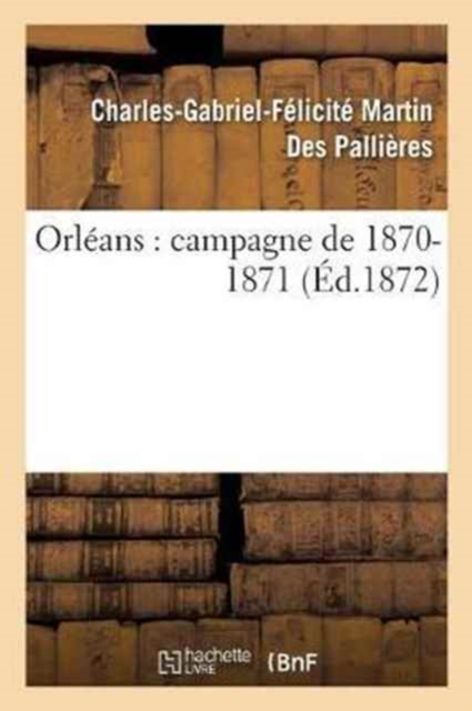 Orléans: campagne de 1870-1871 / par le général Martin Des Pallières, ...Date de l'édition originale: 1872Appartient à l'ensemble documentaire: Centre1Le présent ouvrage s'inscrit dans une politique de conservation patrimoniale des ouvrages de la littérature Française mise en place avec la BNF.HACHETTE LIVRE et la BNF proposent ainsi un catalogue de titres indisponibles, la BNF ayant numérisé ces oeuvres et HACHETTE LIVRE les imprimant à la demande.Certains de ces ouvrages reflètent des courants de pensée caractéristiques de leur époque, mais qui seraient aujourd'hui jugés condamnables.Ils n'en appartiennent pas moins à l'histoire des idées en France et sont susceptibles de présenter un intérêt scientifique ou historique.Le sens de notre démarche éditoriale consiste ainsi à permettre l'accès à ces oeuvres sans pour autant que nous en cautionnions en aucune façon le contenu.Pour plus d'informations, rendez-vous sur www.hachettebnf.fr