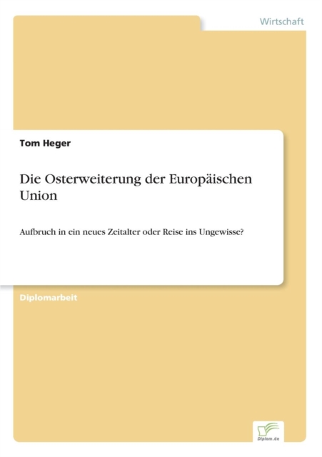 Die vorliegende Diplomarbeit beschäftigt sich in Form einer Kosten-Nutzen-Analyse mit der Osterweiterung der Europäischen Union. Dabei wird versucht diese bipolar zu betrachten. Aufgrund der großen Menge von Informationen zu diesem Thema und der forschungs-ökonomischen (quantitativen) Restriktionen bei der Volltext-Seitenanzahl (50) gibt die Arbeit einen umfassenden Überblick über die Thematik. Spezielle Betrachtungen (z.B. Türkei- u. Russlandfrage) werden nur angerissen. Dennoch gelingt es insbesondere die Kosten-Nutzen-Thematik zu fundamentieren. Neben einem historischen Abriss werden die Beitrittskriterien explizit vertieft und verschiedene Beitrittsszenarien analysiert.