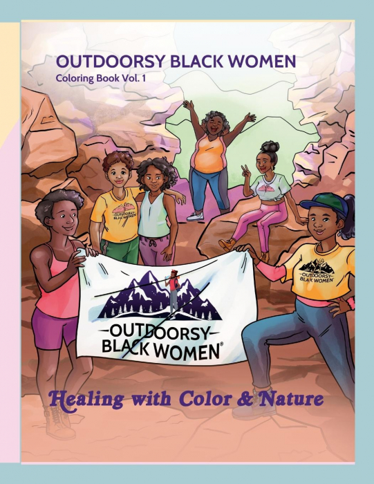 Healing with Color & Nature is the first coloring book by Outdoorsy Black Women. We wanted to show Black women of all ages, body types and skill sets represented in the outdoor world. The book contains 35 coloring pages, each chosen to highlight Black women having an amazing time in the outdoors.