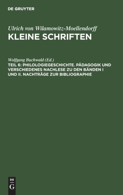 Beskrivelse av Philologiegeschichte. Padagogik und verschiedenes Nachlese zu den Banden I und II. Nachtrage zur Bibliographie
