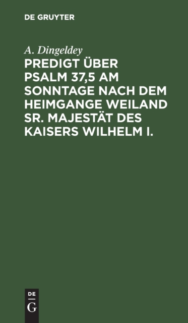 Beskrivelse av Predigt uber Psalm 37,5 am Sonntage nach dem Heimgange weiland Sr. Majestat des Kaisers Wilhelm I.