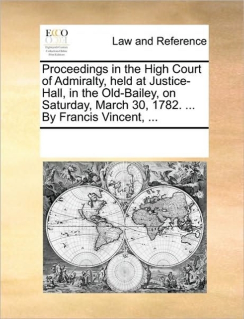 Proceedings in the High Court of Admiralty, Held at Justice-Hall, in the Old-Bailey, on Saturday, March 30, 1782. ... by Francis Vincent, ...
