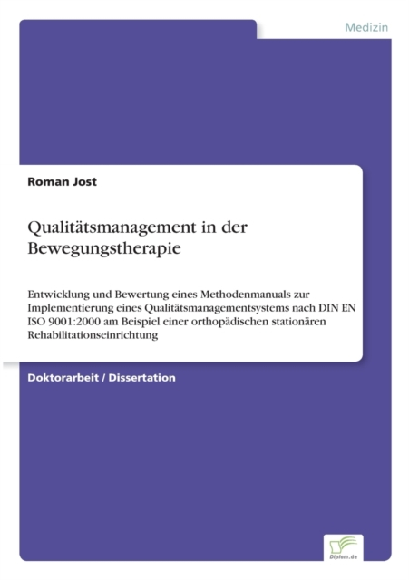 Intention dieser Arbeit ist somit die Entwicklung eines Methodenmanuals zur Implementierung eines Qualitätsmanagementsystems (QMS) im Bereich der Bewegungstherapie einer stationären Rehabilitationsklinik. Es soll als Werkzeug dienen, die vielfältigen Anforderungen, die an ein QMS gestellt werden, umzusetzen.