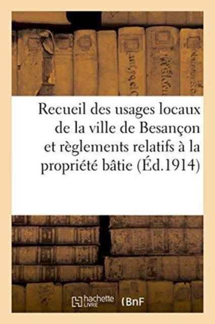 Recueil des usages locaux de la ville de Besançon et des règlements relatifs à la propriété bâtie, édité par l'Association des propriétés immobilières de Besançon et de sa banlieueDate de l'édition originale: 1914Appartient à l'ensemble documentaire: FrancComt1Le présent ouvrage s'inscrit dans une politique de conservation patrimoniale des ouvrages de la littérature Française mise en place avec la BNF.HACHETTE LIVRE et la BNF proposent ainsi un catalogue de titres indisponibles, la BNF ayant numérisé ces oeuvres et HACHETTE LIVRE les imprimant à la demande.Certains de ces ouvrages reflètent des courants de pensée caractéristiques de leur époque, mais qui seraient aujourd'hui jugés condamnables.Ils n'en appartiennent pas moins à l'histoire des idées en France et sont susceptibles de présenter un intérêt scientifique ou historique.Le sens de notre démarche éditoriale consiste ainsi à permettre l'accès à ces oeuvres sans pour autant que nous en cautionnions en aucune façon le contenu.Pour plus d'informations, rendez-vous sur www.hachettebnf.fr