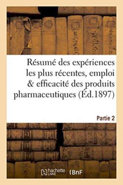 Résumé des expériences les plus récentes faites sur l'emploi et l'efficacité des produits pharmaceutiques fabriqués par la compagnie parisienne de couleurs d'aniline, à Creil (Oise). Partie 2Date de l'édition originale: 1897Appartient à l'ensemble documentaire: Picardi1Le présent ouvrage s'inscrit dans une politique de conservation patrimoniale des ouvrages de la littérature Française mise en place avec la BNF.HACHETTE LIVRE et la BNF proposent ainsi un catalogue de titres indisponibles, la BNF ayant numérisé ces oeuvres et HACHETTE LIVRE les imprimant à la demande.Certains de ces ouvrages reflètent des courants de pensée caractéristiques de leur époque, mais qui seraient aujourd'hui jugés condamnables.Ils n'en appartiennent pas moins à l'histoire des idées en France et sont susceptibles de présenter un intérêt scientifique ou historique.Le sens de notre démarche éditoriale consiste ainsi à permettre l'accès à ces oeuvres sans pour autant que nous en cautionnions en aucune façon le contenu.Pour plus d'informations, rendez-vous sur www.hachettebnf.fr