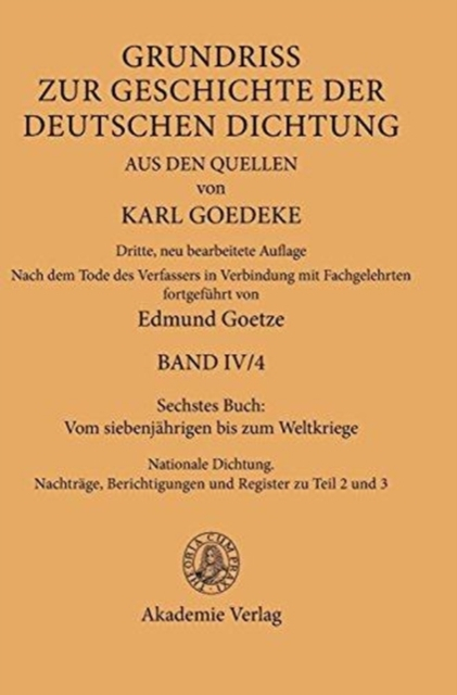 - Vom Siebenjahrigen Bis Zum Weltkriege: Nationale Dichtung. Nachtrage, Berichtigungen Und Register Zu Teil 2 Und 3