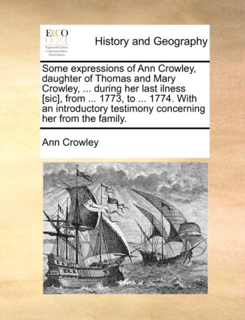 Some Expressions of Ann Crowley, Daughter of Thomas and Mary Crowley, ... During Her Last Ilness [sic], from ... 1773, to ... 1774. with an Introductory Testimony Concerning Her from the Family.