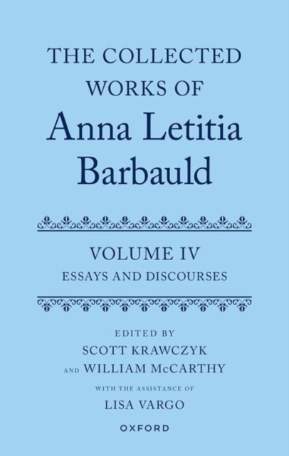 This volume presents together with contextualizing headnotes and annotations all of Anna Letitia Barbauld's known essays, political writings, and discourses. Thirty essays featured in this collection from The Monthly Magazine and The Athenaeum are attributed to Barbauld for the first time.